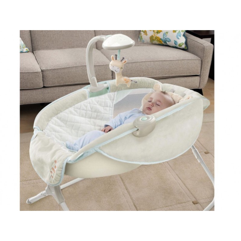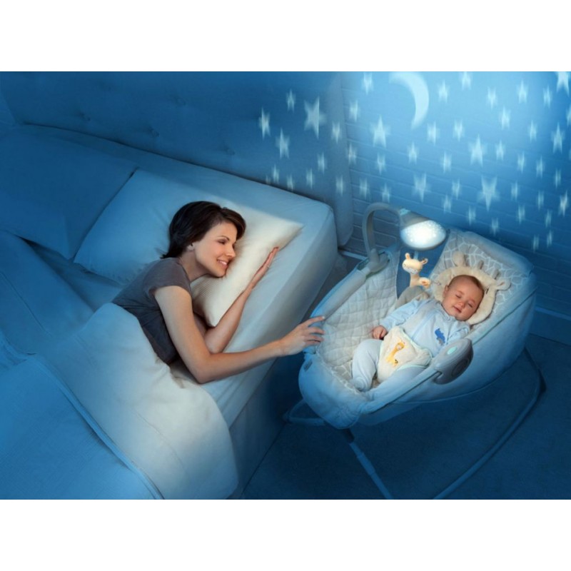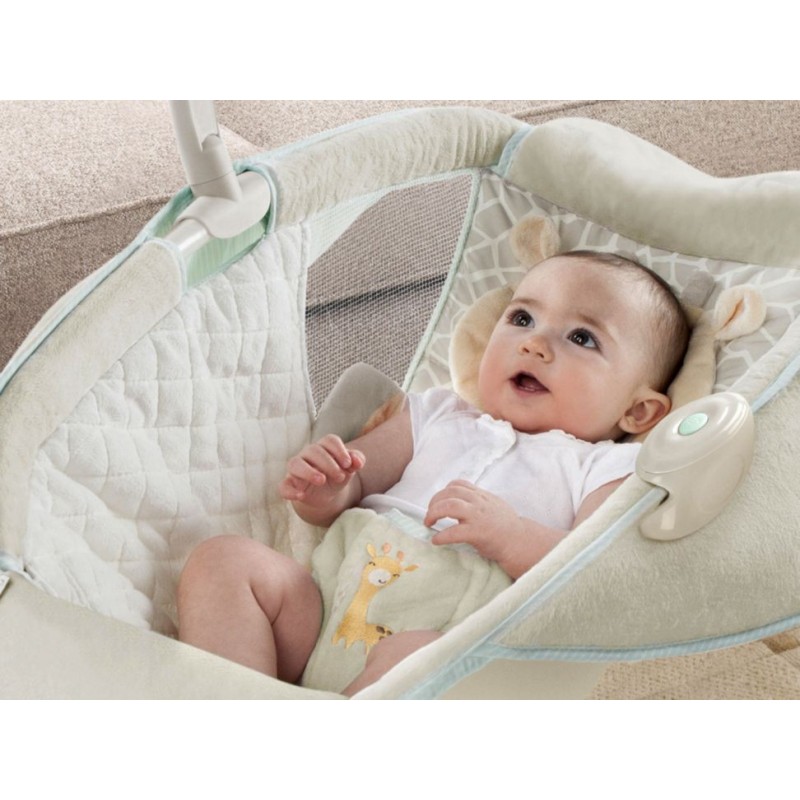 Otra InformaciónProtector removible y 2 posiciones de reclinamiento unidad de vibración removible, marco ligero para fácil transportación y almacenaje, arnés de 3 puntos de seguridad. Proyector Soothing Star Shine que incluye 2 juguetes de peluche, 5 melodías y 3 sonidos de la naturaleza, control de volumen. Soporte hasta 9 kg (Hasta que el bebé comience a apoyarse con manos y/o pies para levantarse)